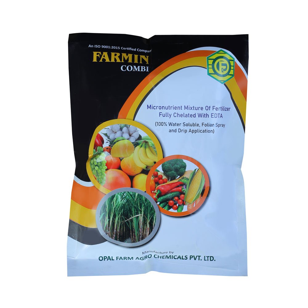 Farmin is micronutrient mixture fertilizer which is made with essential trace elements such as Fe, Mn, Zn, Cu, Mo, B. Farmin is the best medium to provide all necessary trace elements for growth of plant & satisfies micronutrient deficiency throughout the plant life cycle by drip application. It is a COMPLIANT PRODUCT as per Fertilizer Control Order (FCO) 1985.