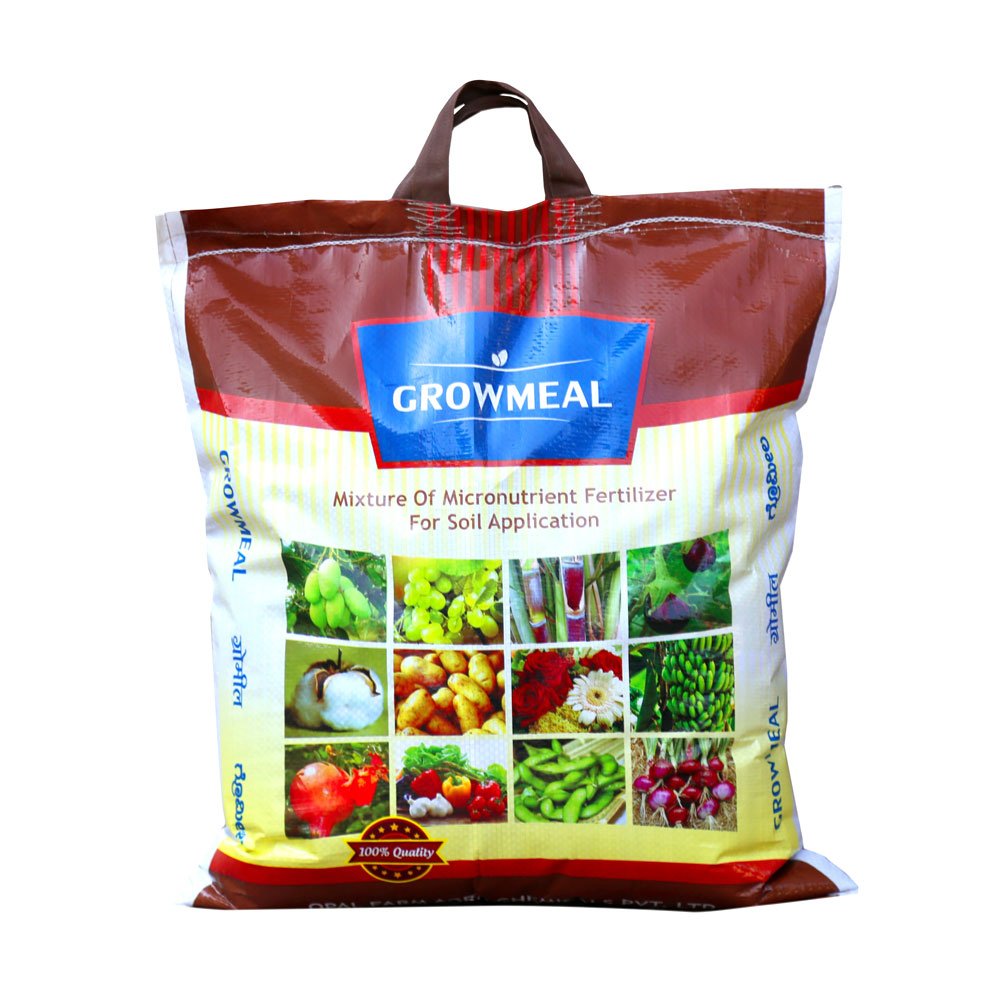 Growmeal is the best medium to provide all necessary trace elements such as Fe, Mn, Zn, Cu, B for growth of plant & cure micronutrient deficiency throughout the plant life cycle by soil application. It is a COMPLIANT PRODUCT as per Fertilizer Control Order (FCO) 1985.